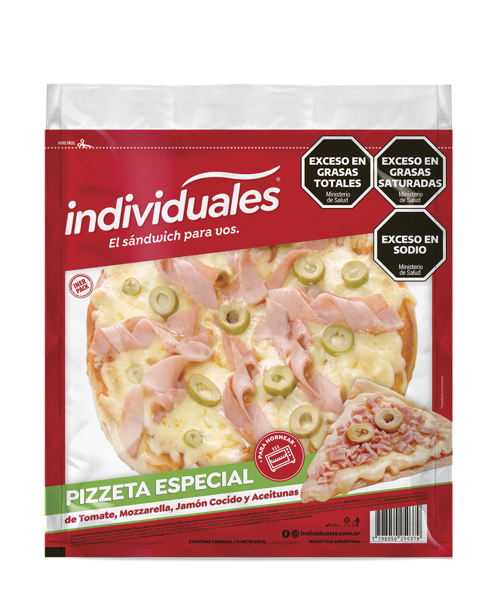 Tomate, Muzzarella, Jamón Cocido y aceitunas